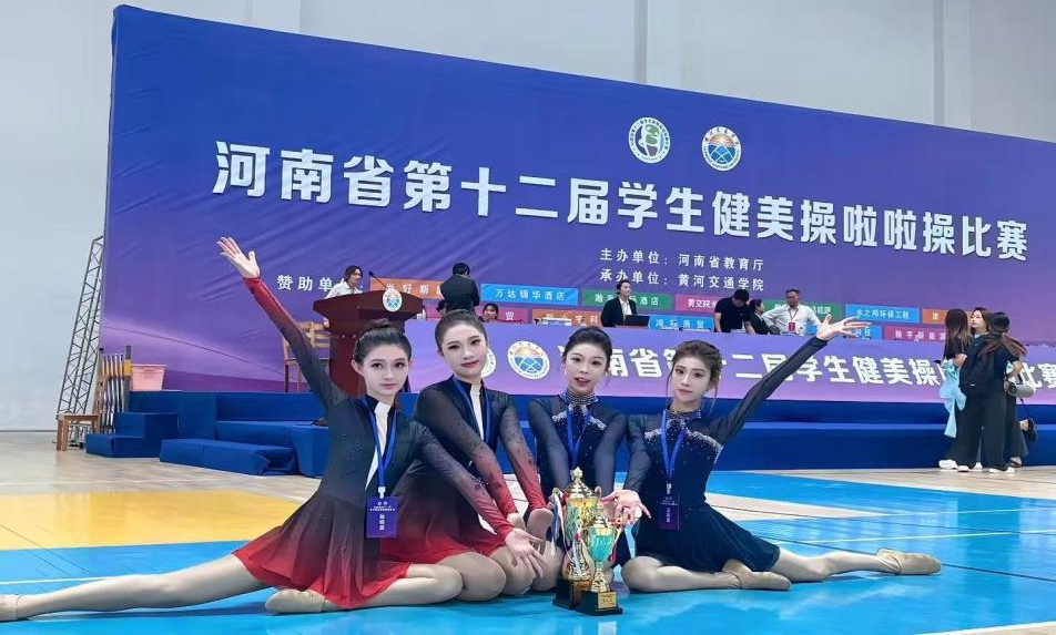 乒乓球队和羽毛球队的突破形成了“头雁效应”。随后,黄雅鑫、曹若凡老师带领的健美操队在2025年省赛中连夺“双人爵士”“小集体套路”“单人街舞”三项冠军。